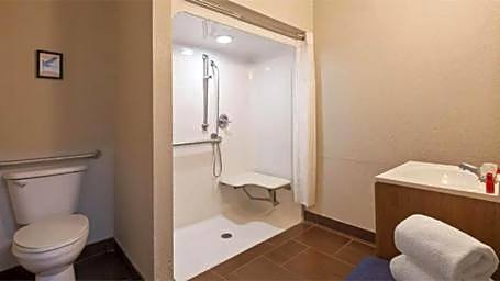 2 Queen Communication Mobility Accessible Roll Shower includes 2 queen-size beds 150-154 width and is Wheelchair-accessible with a Disability-friendly bathroom.